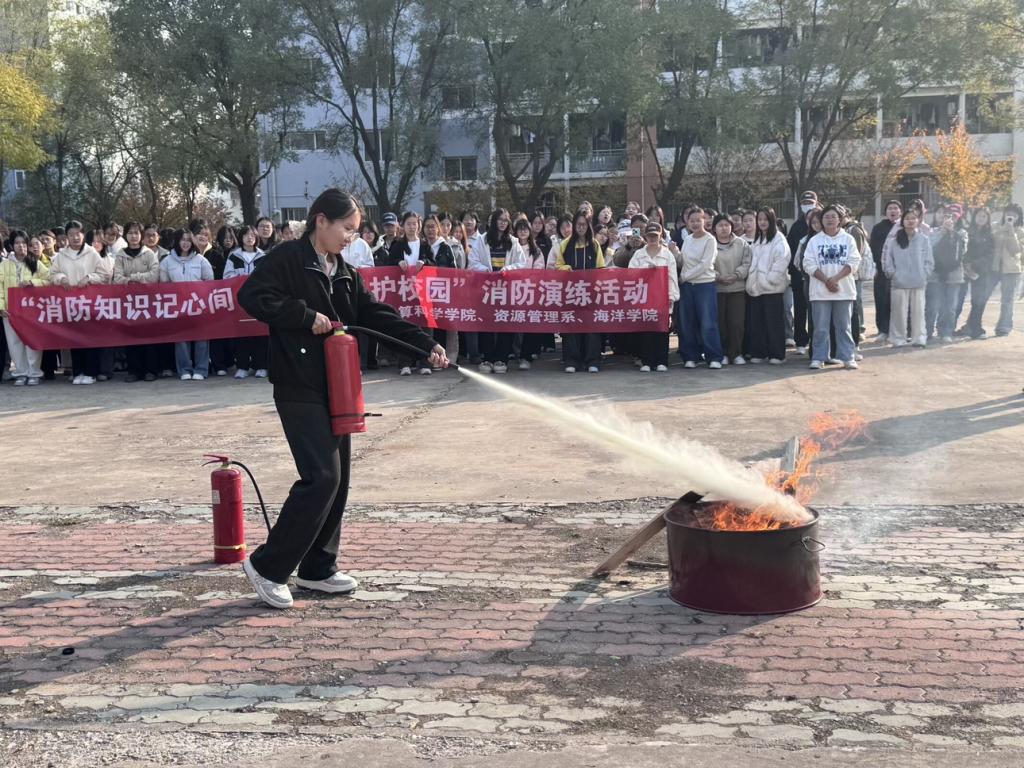 为进一步强化学生宿舍消防安全管理,提升全体学生的防火自救意识和应急处置能力,切实筑牢校园安全防线,2025年11月4日下午两点,数学与计算科学学院联合资源管理系、化学系以及海洋学院开展“消防知识记心间,师生携手护校园”消防演练活动,共计120余名学生参加。