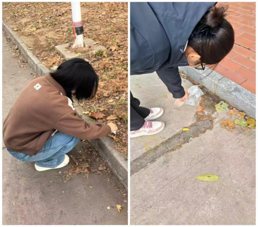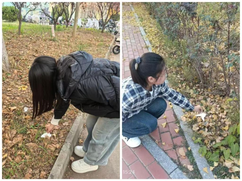清捡垃圾促文明,美化环境树新风。阳光下,他们弯腰俯身,指尖细细捡拾散落的垃圾。纸屑、塑料瓶、烟头……藏在草丛缝隙、路边角落,都被一一收纳进垃圾袋。汗水浸湿衣摆,手掌沾了尘土,他们却笑意盈盈,用双手为环境拂去“伤痕”。这份默默地坚守,让校内街道更洁净,让绿意更鲜亮,用实际行动传递着爱护学院的温暖力量。