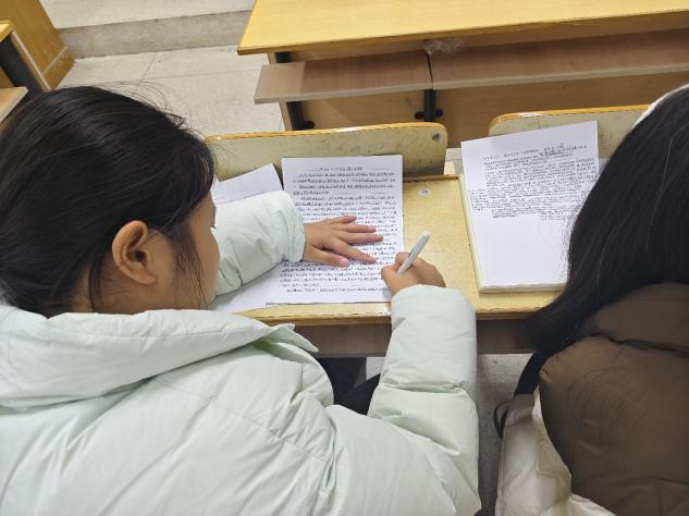 奋斗作笔书青春,梦想为墨写华章。同学们时而低头沉思,眉头微蹙构思篇章框架;时而提笔疾书,字迹在稿纸上快速铺展。有人以自身经历为切入点,写下挑灯夜读的坚持;有人聚焦身边榜样,讲述平凡人奋斗的微光故事;还有人立足时代视角,畅想以青春之力助力家国发展,字里行间满是少年的朝气与担当。一篇篇作品如冬日里的星火,既展现了个体在平凡生活中的奋斗姿态,也折射出数计学院学生们积极向上的精神风貌。