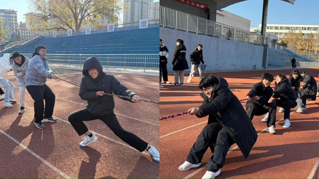 数智同心,拔赢未来。赛场上,参赛选手们紧握长绳、脚蹬实地,身体后倾形成坚实“人墙”,眼神坚定、口号嘹亮,每一寸拉拽都凝聚着团队的力量;场边,呐喊声、加油声、欢呼声此起彼伏,学生们共同组成“最强后援团”,为参赛队伍注入源源不断的动力,充分展现了数计学子坚韧的意志与强烈的集体荣誉感。