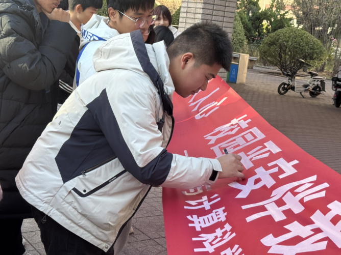 活动尾声,“消防意识入人心,校园安全伴我行”主题横幅缓缓展开,同学们郑重签名立誓,承诺将消防安全知识内化于心、外化于行。未来,学院将持续把安全育人放在核心位置,推动消防安全与日常管理深度融合,以扎实举措筑牢校园安全防线,为平安校园建设注入持久动力。