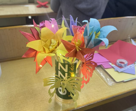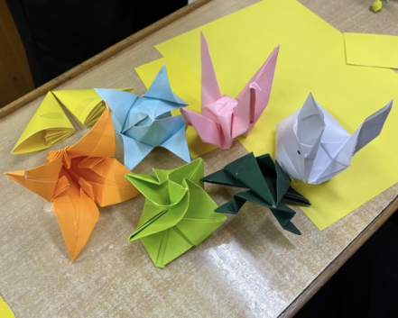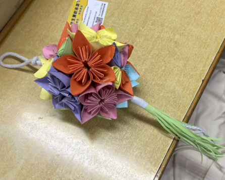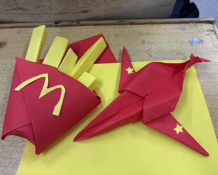活动现场,同学们手执彩纸、剪刀,沉浸式投入创作。大家尽情迸发奇思妙想,作品创意迭出、异彩纷呈:既有花篮、千纸鹤、玉兔这类雅致精巧的经典折纸造型,亦有飞机、薯条这类充满生活意趣的创意形象,更不乏圣诞树、花球这类兼具美学价值与手工巧思的作品。部分同学将多种折法融会贯通,打造出风格独特的混搭纸艺佳作。创作之余,同学们彼此切磋技法、分享灵感,一张张普通彩纸在指尖翻飞间被赋予灵动生命力。