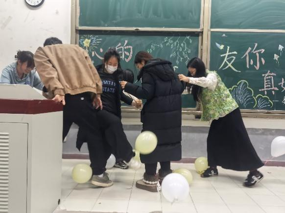 活动精心设计的四大环节环环相扣,让温暖与活力贯穿始终。首个环节“负面情绪远离我”趣味十足,学生们将代表积极与消极的气球绑在脚上,在指定区域内进行对抗。清脆的爆破声与阵阵笑声交织,象征着将负面情绪踩在脚下,为身心注入满满正能量。