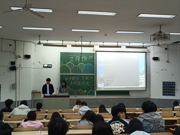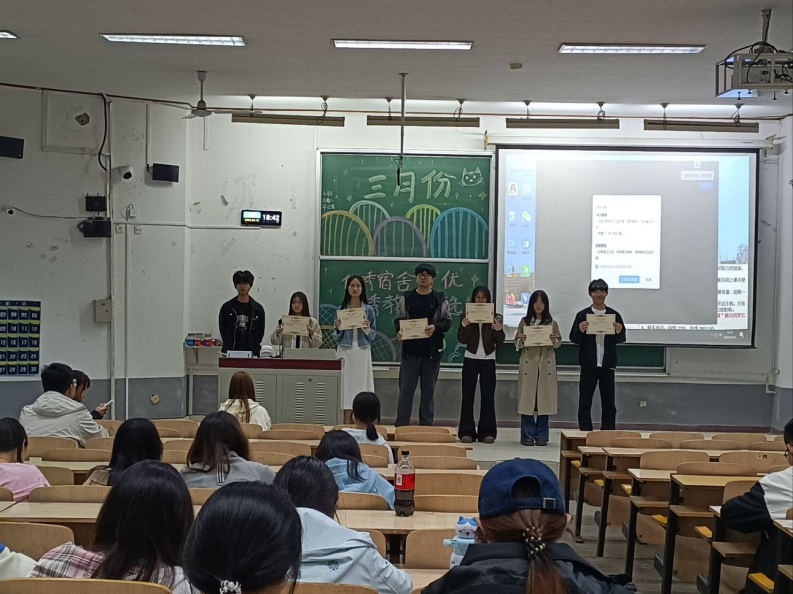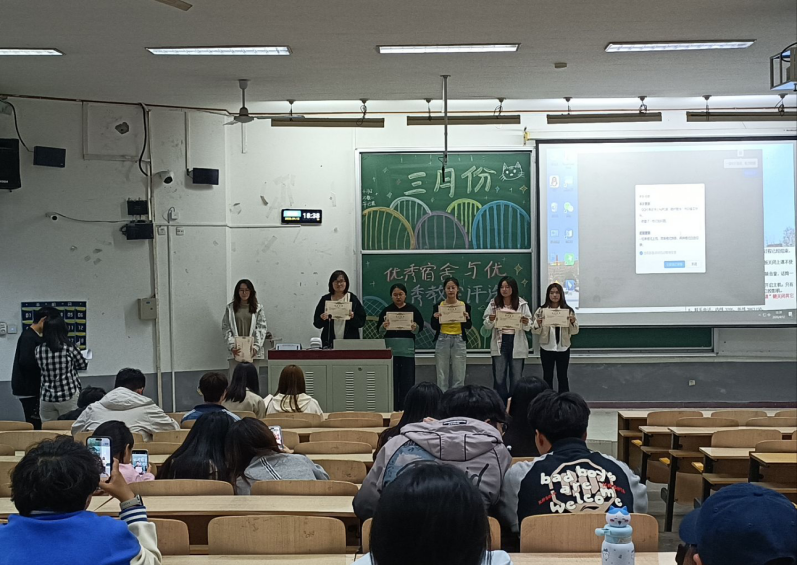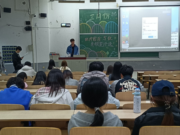 为规范宿舍与教室日常管理,营造干净整洁、文明向上的学习生活环境。2026年4月12日,数学与计算科学学院大学生自律委员会于南院六阶梯教室举办“3月份优秀宿舍和优秀教室”表彰活动。本次活动共有2025级优秀宿舍及优秀教室全体成员、各班生活委员共计80余名学生参与。