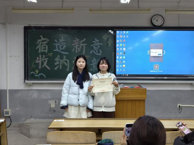 评委们从整洁度、创意性、实用性等维度打分,最终评选出4个宿舍。3114宿舍王鑫泰,赵扬和郑光轩获得一等奖;6409宿舍李缘圆和王晗获得二等奖;6411宿舍李明嘉和颜娇璇、6415宿舍郑贵贤和刘墨涵获得三等奖。