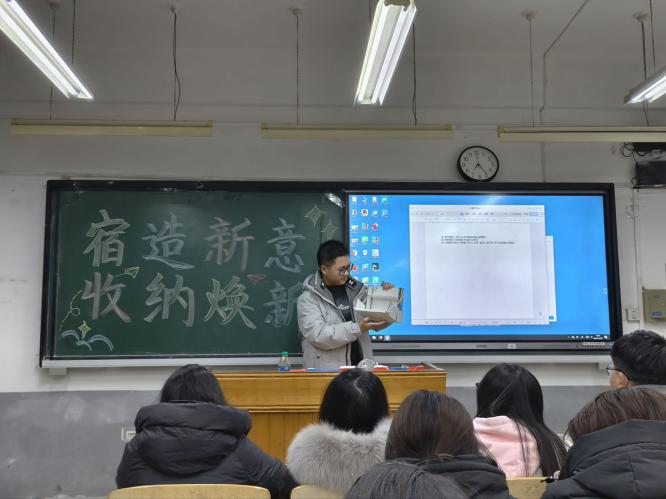 为营造整洁有序的宿舍环境,培养学生良好生活习惯,2025年11月30日,数学与计算科学学院大学生自律委员会于南院2406教室开展“宿造新意,收纳焕新”活动。活动聚焦创意收纳和实用技巧两个方面,共吸引14组宿舍参与。