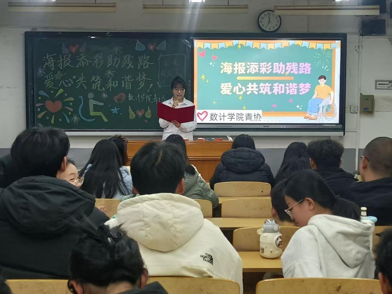 为深入践行社会主义核心价值观,弘扬扶残助残的传统美德,进一步培养学生的社会责任感与人文关怀,2025年12月1日,数学与计算科学学院青年志愿者协会组织开展“海报添彩助残路,爱心共筑和谐梦”助残主题海报制作活动,用生动的视觉语言诠释助残初心,凝聚起关爱残疾人的青春力量。